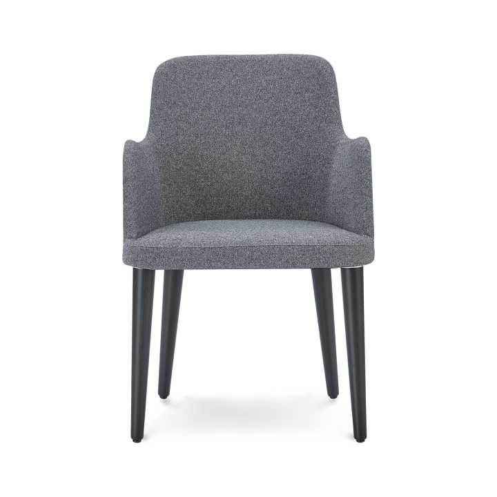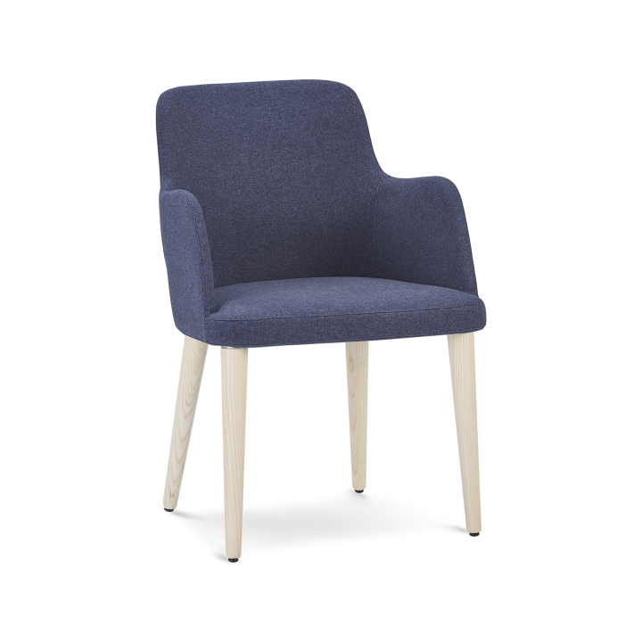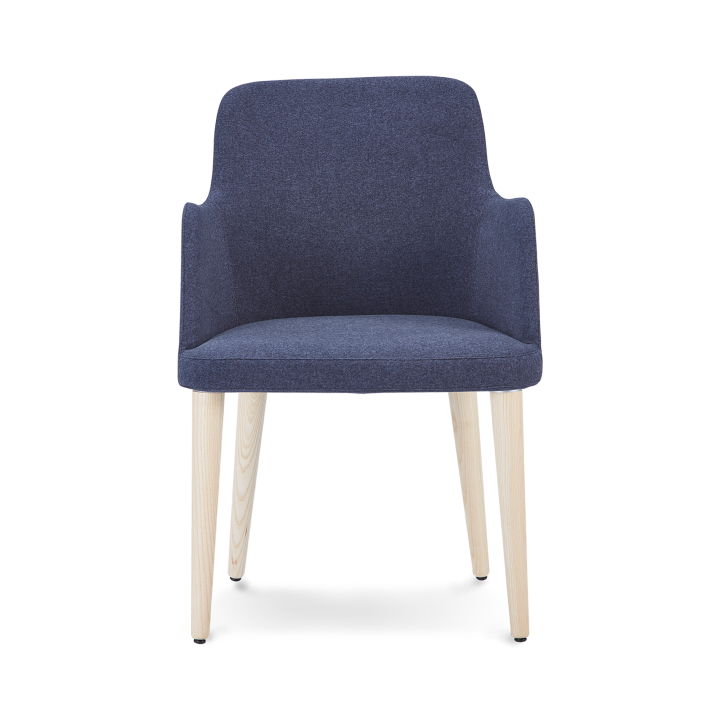 Piping detail on this chair can be tone on tone same color with the body of the chair or in contrasting color. B&T Design lets customers choose desired color for the piping to make their work easier to match this chair with their interior color scheme. With its steel structure and polyurethane foams its very robust and long lasting chair yet very refind thanks to its slender lines. Metal legs can be chrome or painted in any desired colors. There are two different trype of wood options. First one is individual wood dowel secured into steel structure of the seat one by one. The other option is more conventional four legged version attached to the seat as one piece.
