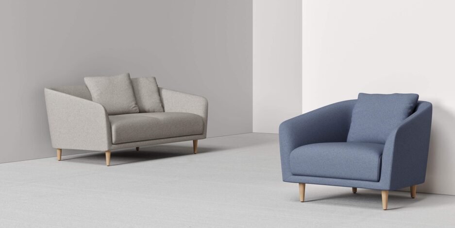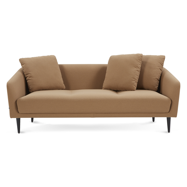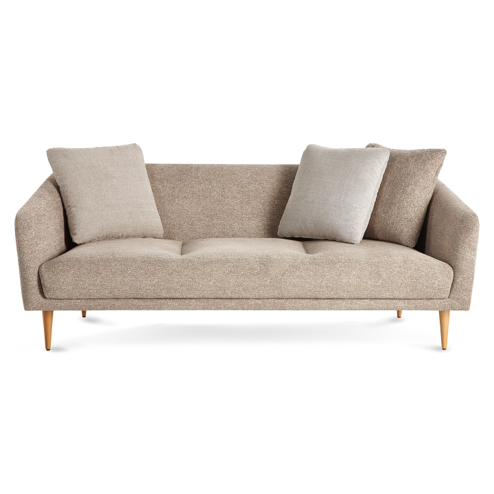 Conical wooden legs can be ordered in desired stain color. Boom is offered in different width options as loveseat and three seater sofa. Matching ottoman is also available. Sewing details in the seating area increase the chicness of the sofa, making unusual aesthetic appeal visible.