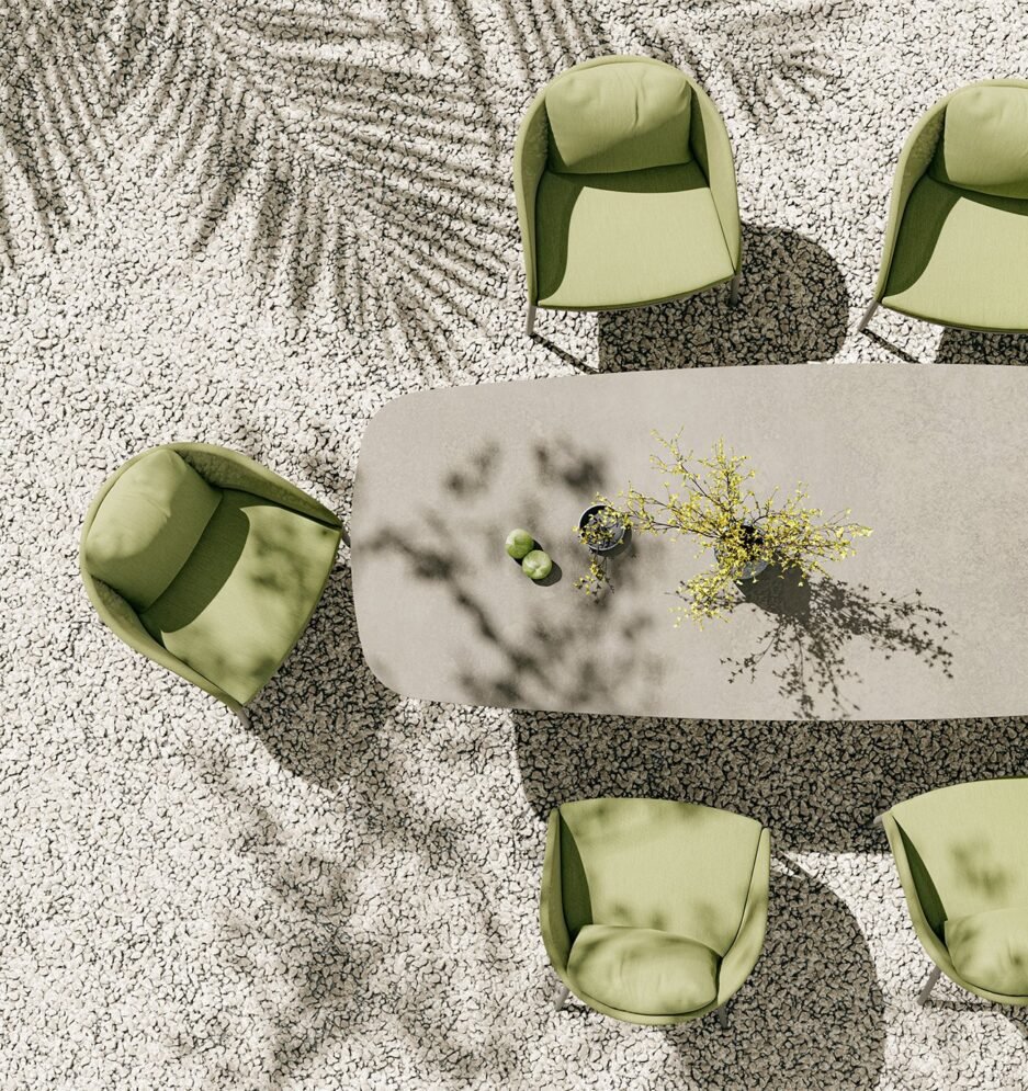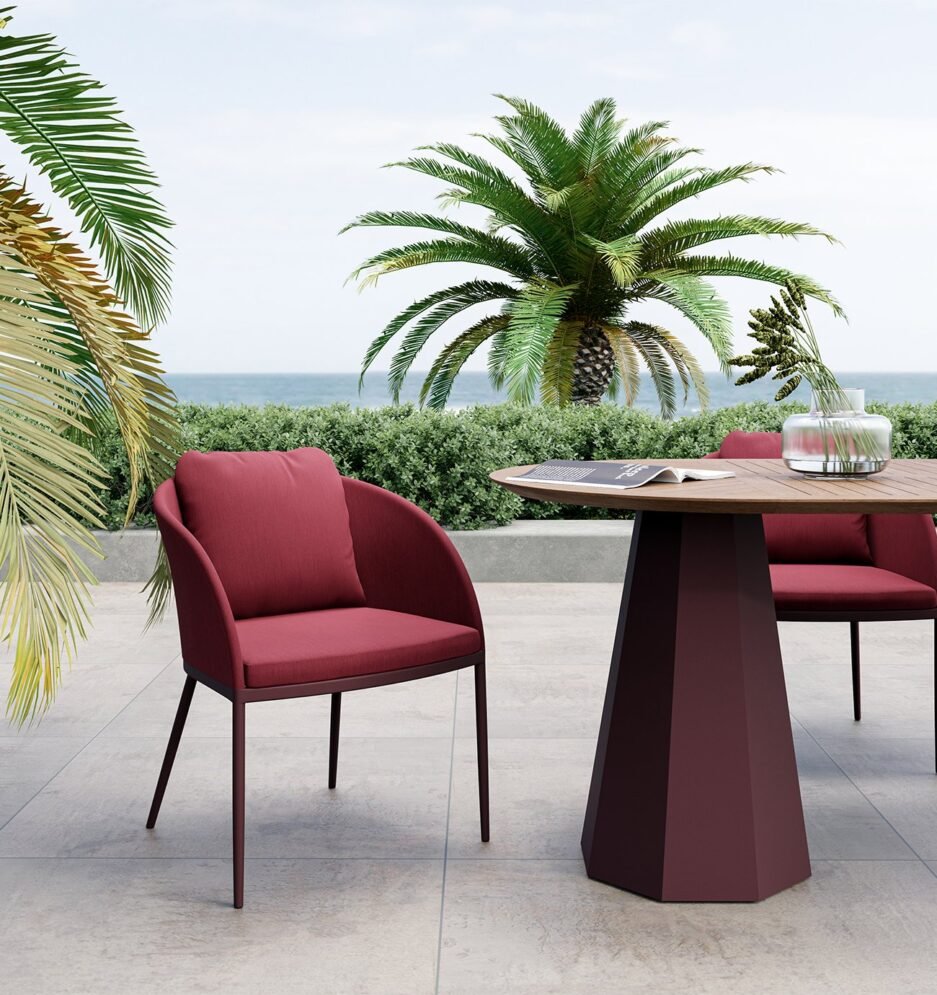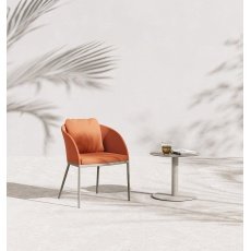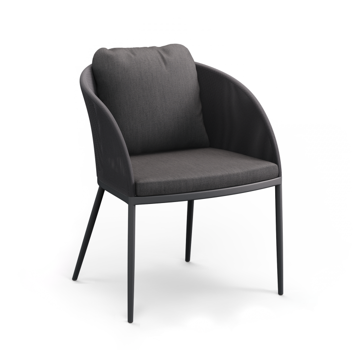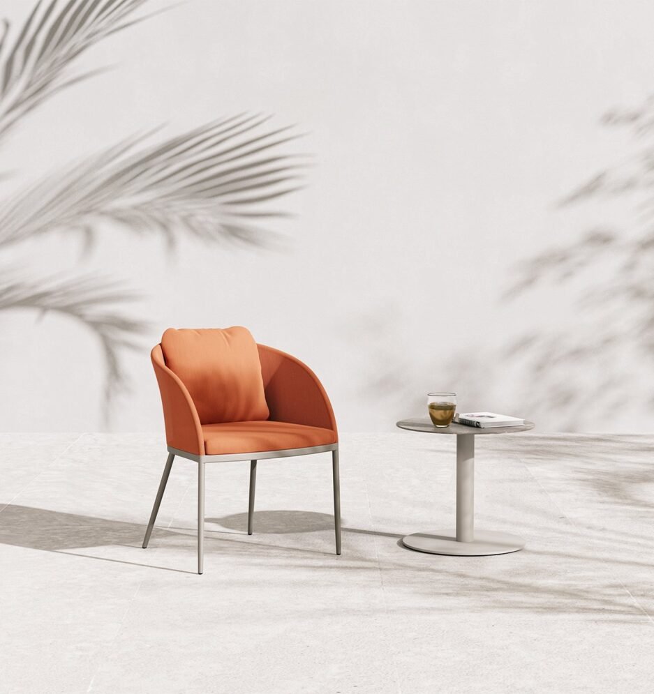 Meet Roy, which brings elegance to the outdoors using suitable materials for outdoor conditions by preserving the same design language, B&T reshapes its unique forms and the authentic lifestyle that it has created, and its new designs erase the boundaries between the indoors and outdoors. Designed as a unique model with an emphasis of comfort and elegance, the Roy chair brings the seriousness of the indoors to the outdoors. With its thin, aluminium legs where its twisted form provides a soft conjunction, it offers a perfect togetherness of aesthetics and functionality. Its curved back supports a comfortable sitting position, and its voluminous backrest cushion and its cushioned seat maintain the feeling of comfort even during long periods.