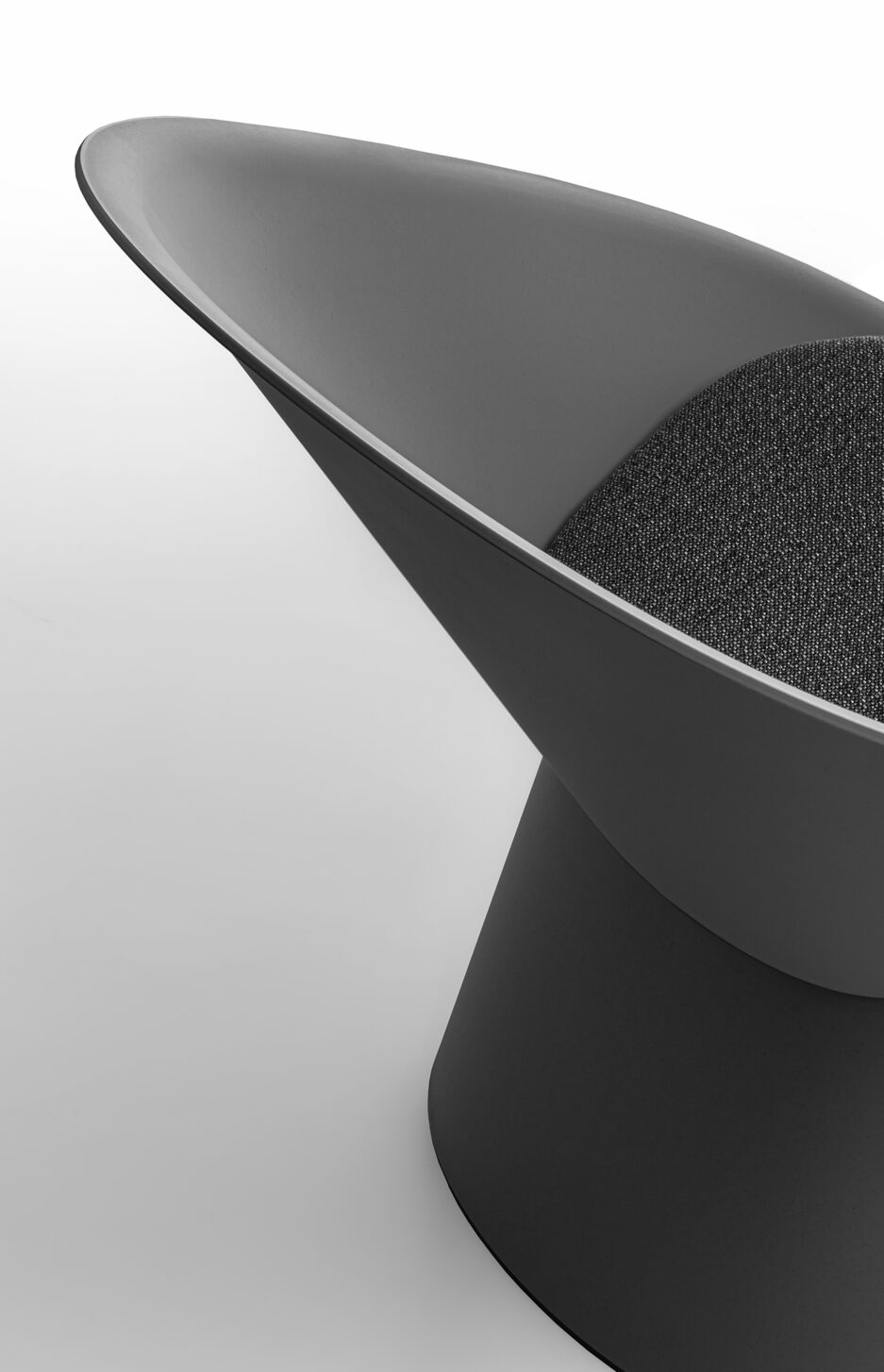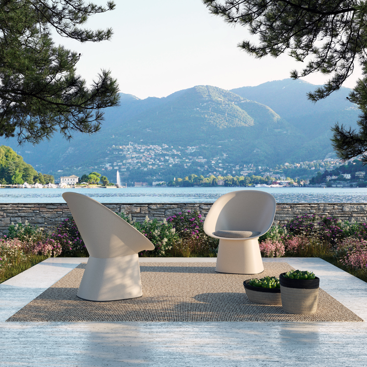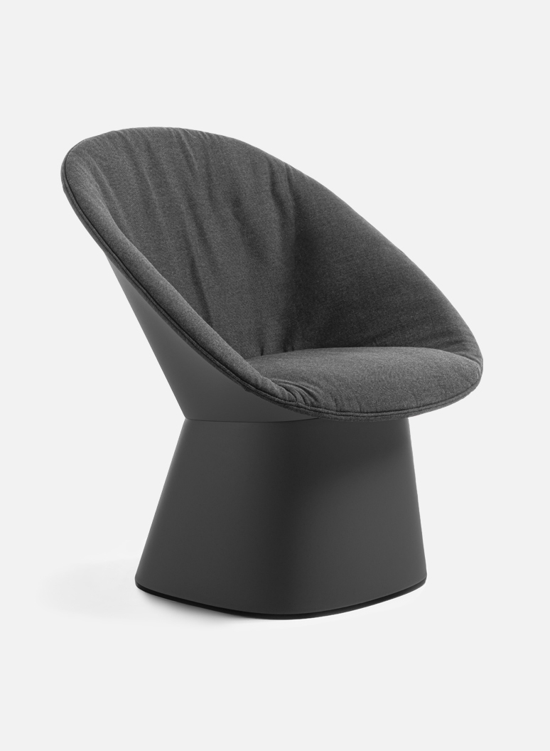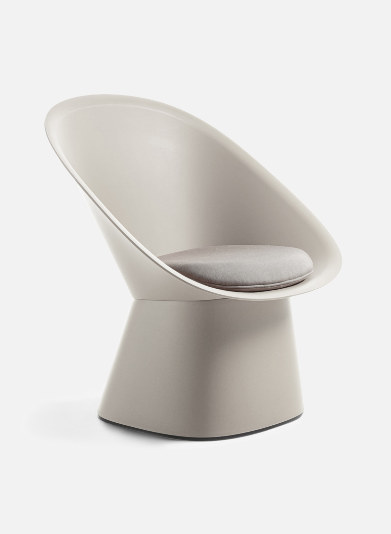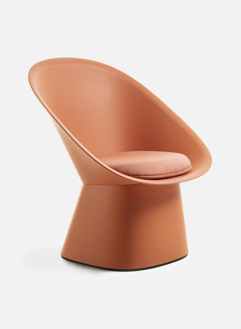 Its silhouette, consisting of an embracing backrest set on a conical base, aesthetically evokes the Japanese fan, thus making it not only a simple yet comfortable lounge chair, but also light and versatile in use: a seat where you can relax and immerse yourself in another reality.